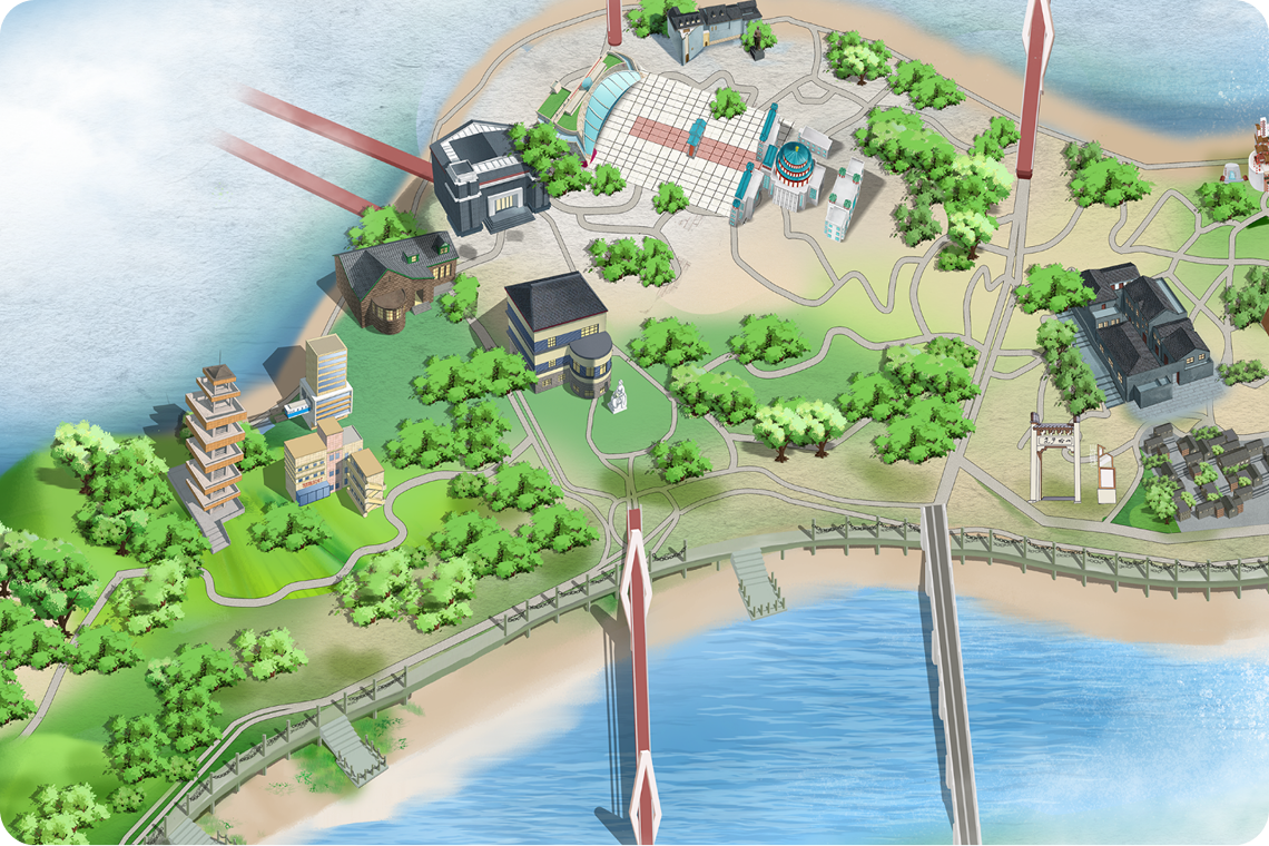 采用了更为理性和规整的数字插画风格,典型的矢量风格导览图