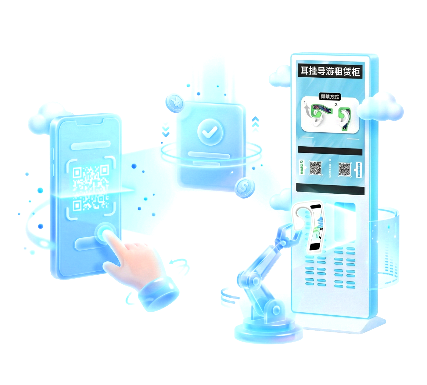 无人化租赁与智能管理:支持游客扫码租借、跨柜归还,24小时无人值守。实时监控设备状态、租借数据、收益情况,远程管理。精准生动的自动讲解:搭载高精度自动感应定位技术,游客行至景点附近时自动触发对应语音讲解,实现“走到哪,讲到哪”的沉浸式体验。系统支持多语种切换,满足不同国籍游客的需求。灵活配置与强大定制能力